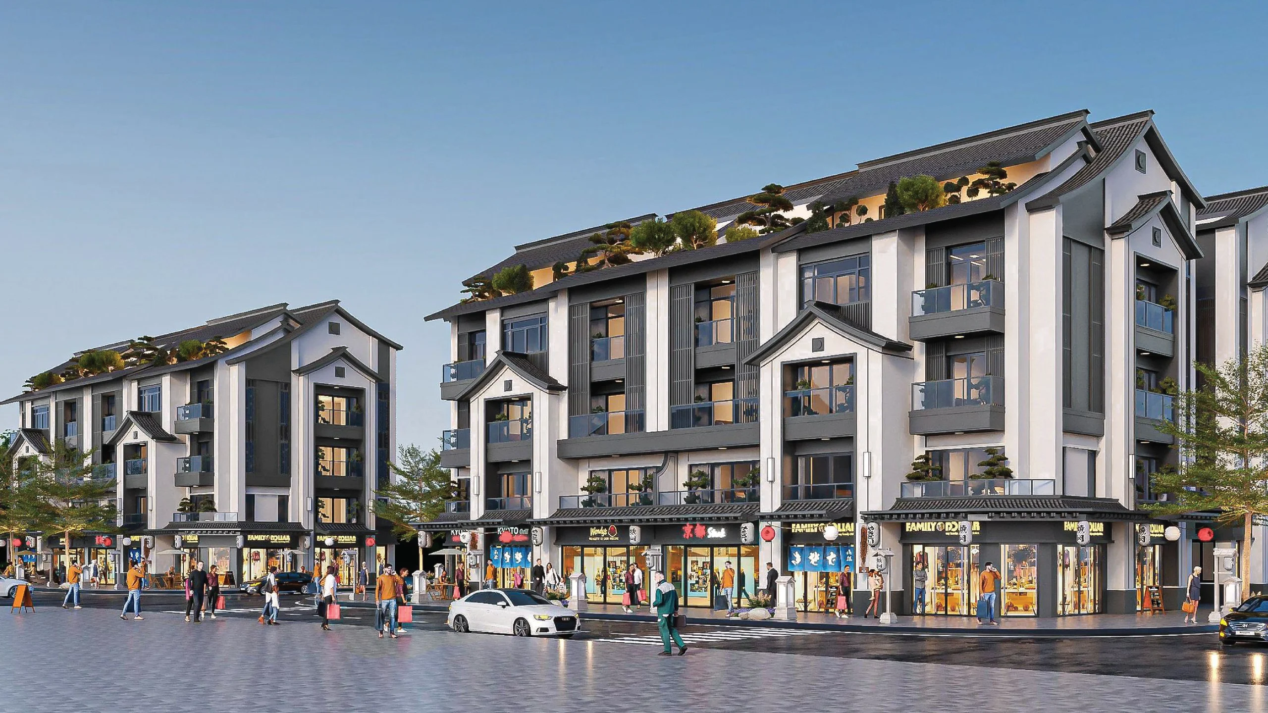 Phong cách kiến trúc: Nhật Bản, với các căn biệt thự mang đậm dấu ấn truyền thống, kết hợp với không gian xanh, yên tĩnh.